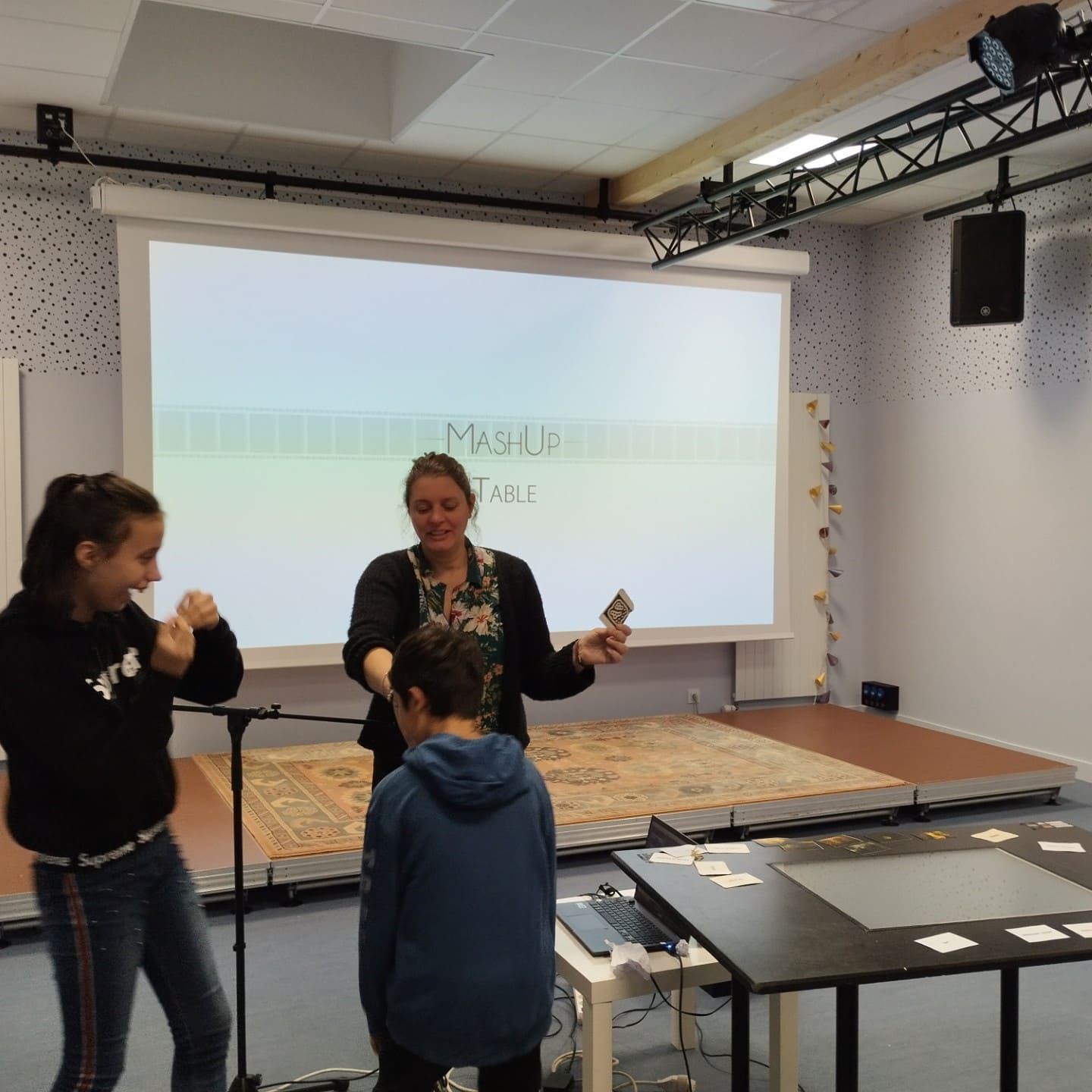Grâce à une table Mash-Up, Claire Cochard (médiatrice culturelle de l'éducation à l'image et au cinéma) initie les jeunes à partir du CM1 à la création de petits films.