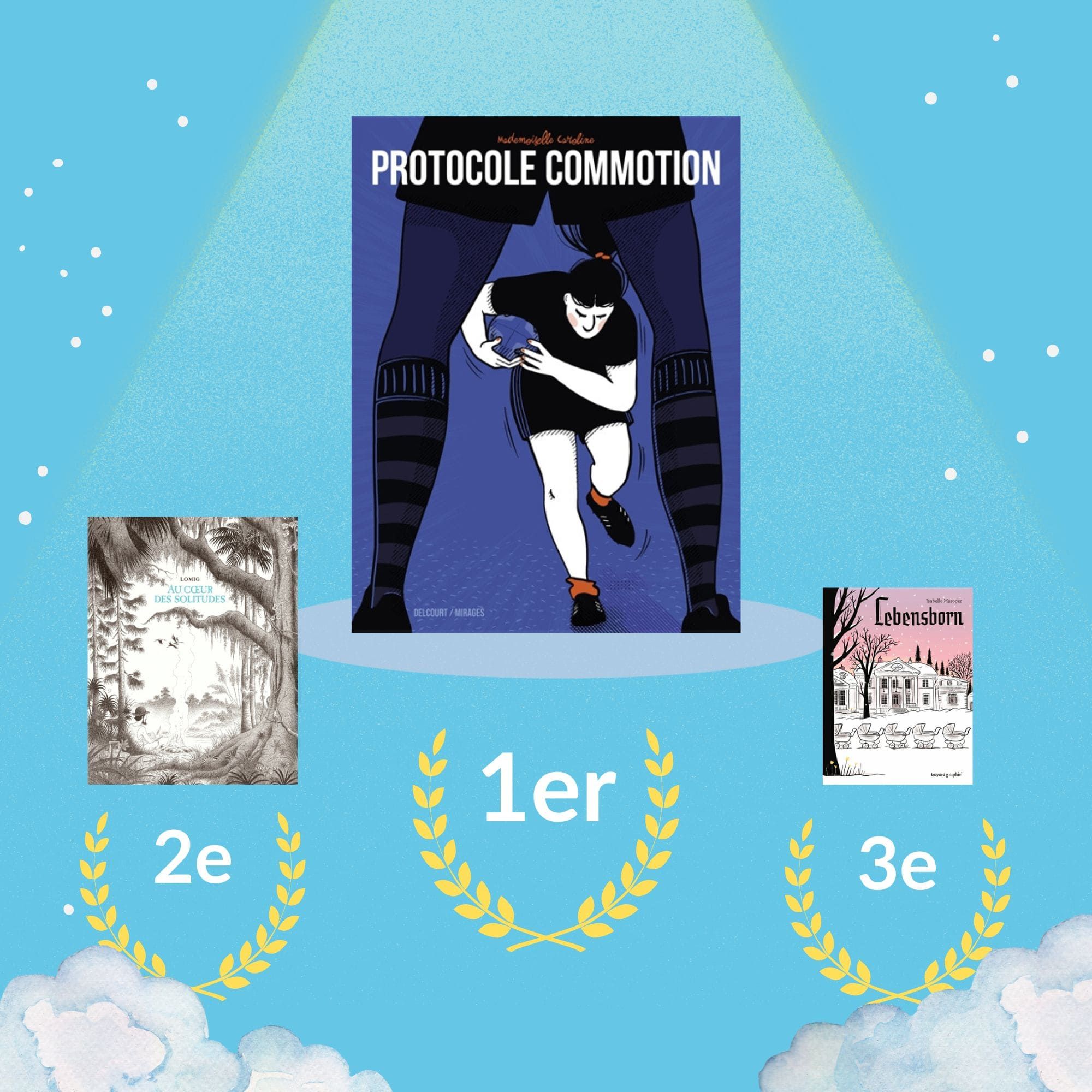 La bande dessinée Protocole commotion de Mademoiselle Caroline aux éditions Delcourt remporte le prix BULL'.